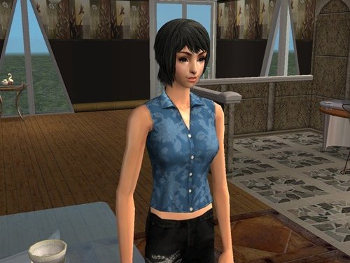這就是我傷腦筋的地方了,既不想把冰晶捏得太醜,又要符合上面的條件,我只得挑這樣子素素的衣服(只有褲子是下載的,即使如此我還是覺得上衣有點花,但又不能上下都素面,那會俗到爆炸),髮型也是特意去挑,介於短髮跟男生頭之間的過渡期長度,化妝更是一門學問了!冰晶的膚色是稍微曬過的蜂蜜色,幫她上妝的時候,粉底也不能挑太白或太紅的(都會很醜!) 眼影跟口紅有上跟沒上一樣,總之就是要弄成像是沒化妝的樣子......而且不能太醜(這才是重點!)
