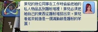 我覺得模三的AI比模二高一些了 (廢話 XD)所以感覺挑戰起來比瑞璧輕鬆一些 ^^ 那些病人都會幫我收盤子,倒垃圾,洗馬桶,甚至幫農作物澆水等等算是乖寶寶了,沒有讓菲兒當清掃的瑪莉亞"過兒,天黑了,趕快回你的古墓吧......"這句話當時真的是一閃而過一打完我就開始狂笑 XD因為羊過的個性是壞心下流,這種愛嚇人的惡作劇行徑比較像他的死小孩時期凜凜大俠嗎?這號人物在杜鵑窩裡看不到喔 XD